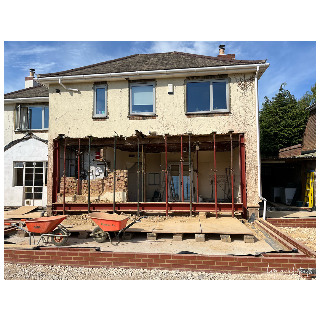 In addition to these challenges, a major development has taken place with a significant hole now visible at the back of the house. This opening marks a crucial stage in the project, facilitating the integration of the new extensions and the reconfiguration of the existing structure.