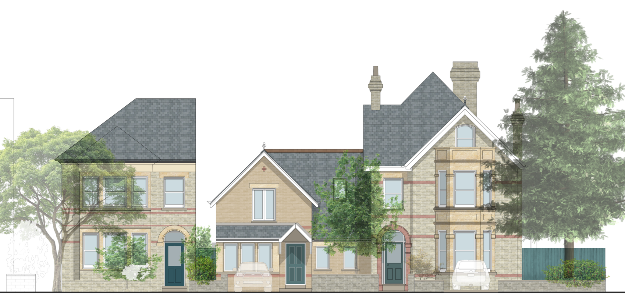 Given the site’s Conservation Area designation and the presence of mature trees within and around the plot, particular attention was given to townscape character, landscape impact, and long-term tree retention. The scale and placement of the proposed front extension were informed by the existing massing, ensuring the development remains visually subordinate within the wider street scene.