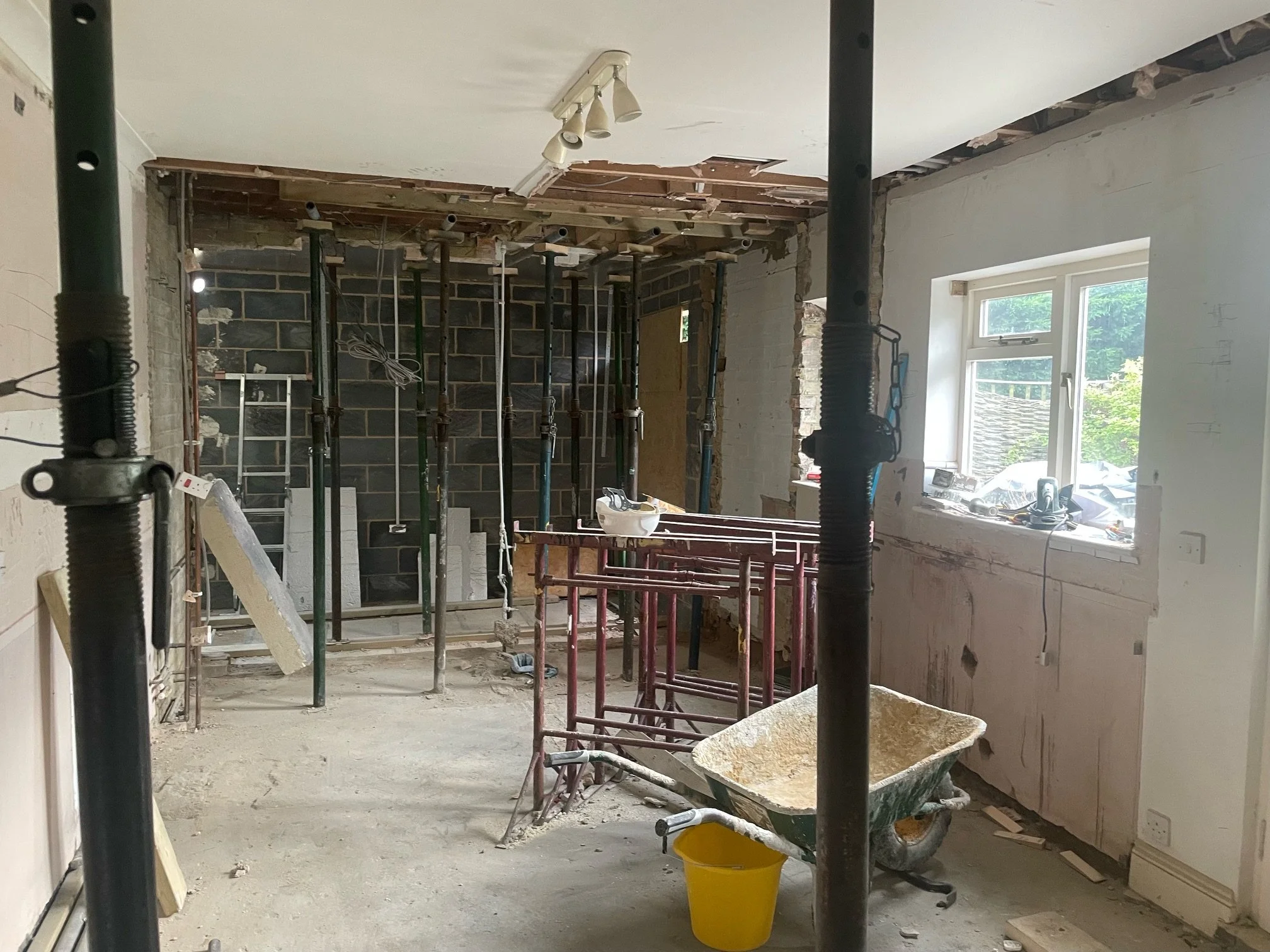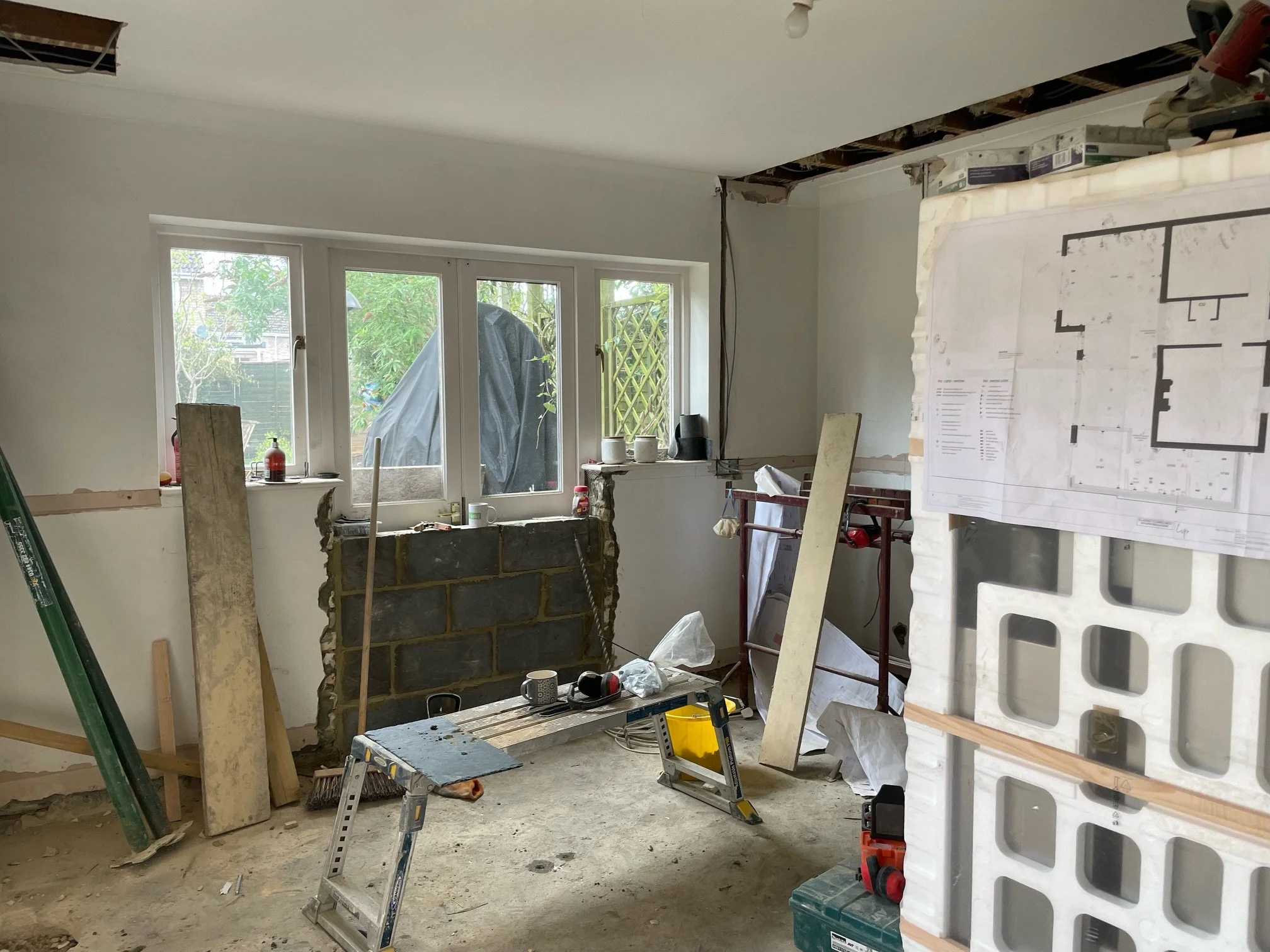 In Month 04, significant progress was made with the internal openings of the side extension. Structural steels were installed and plasterboarding was completed, setting the stage for the final touches. On the exterior, openings were made for two picture windows and a large bifolding door, enhancing the extension's connectivity with the outside and preparing it for the next stages of the build.