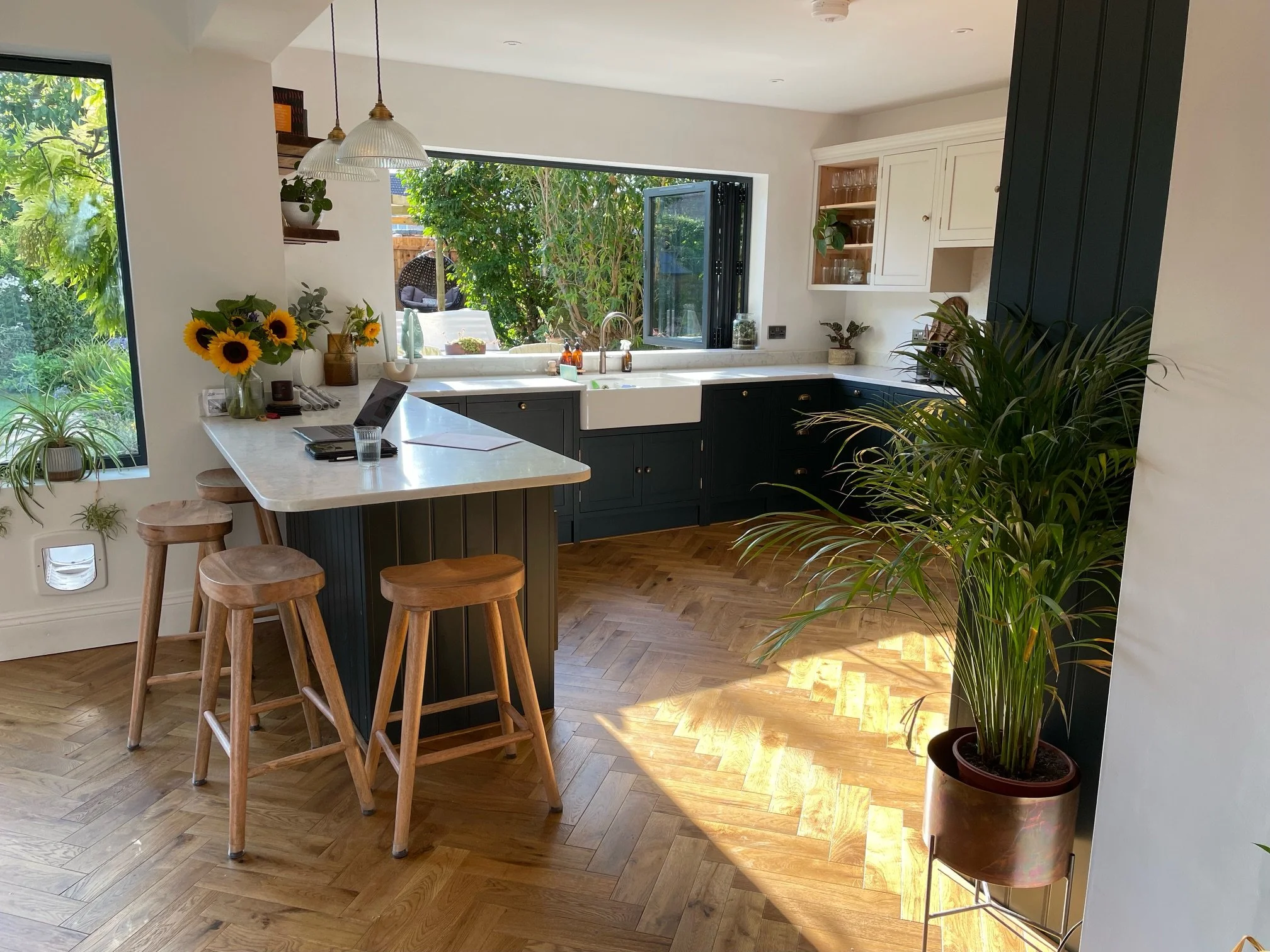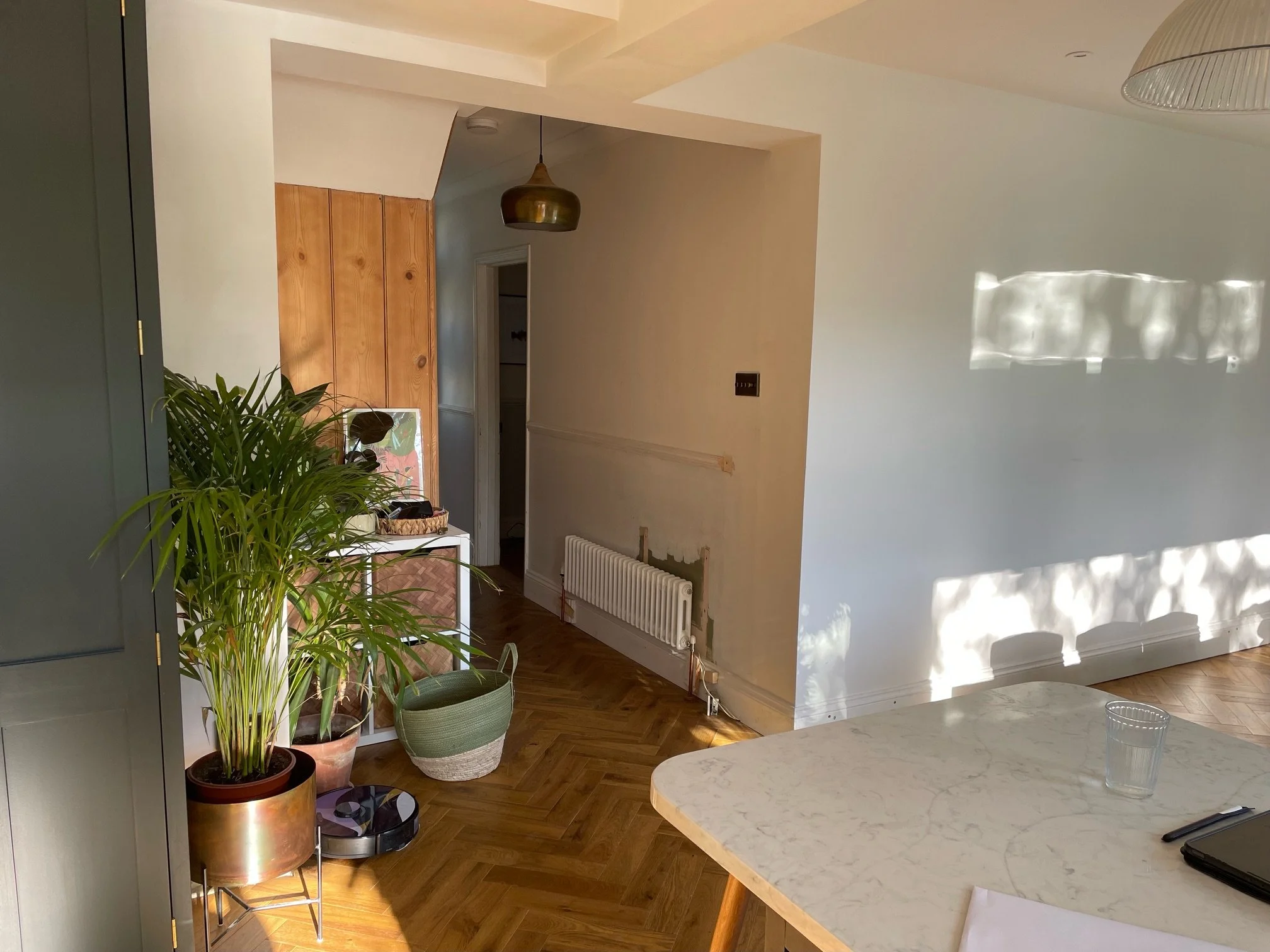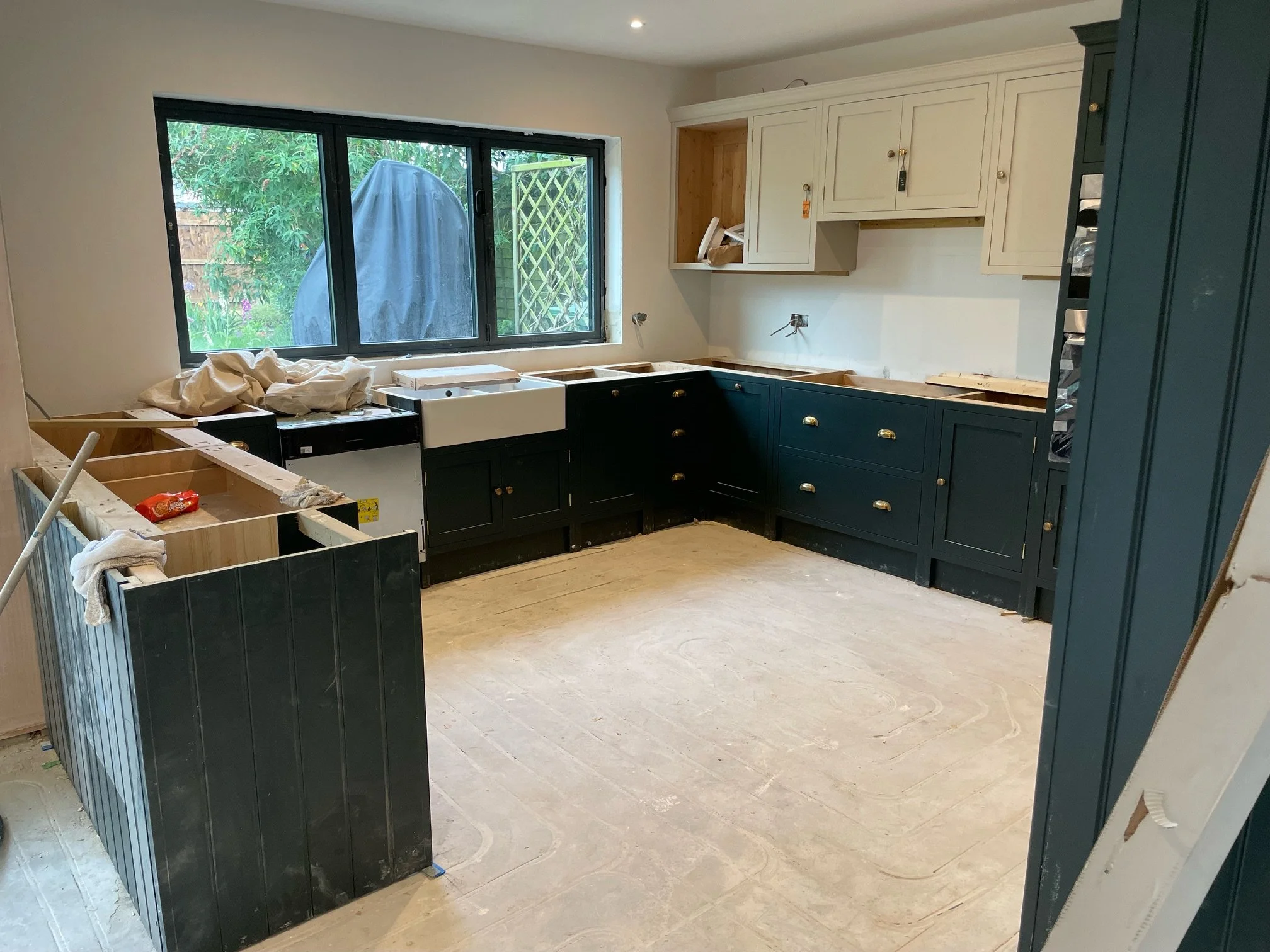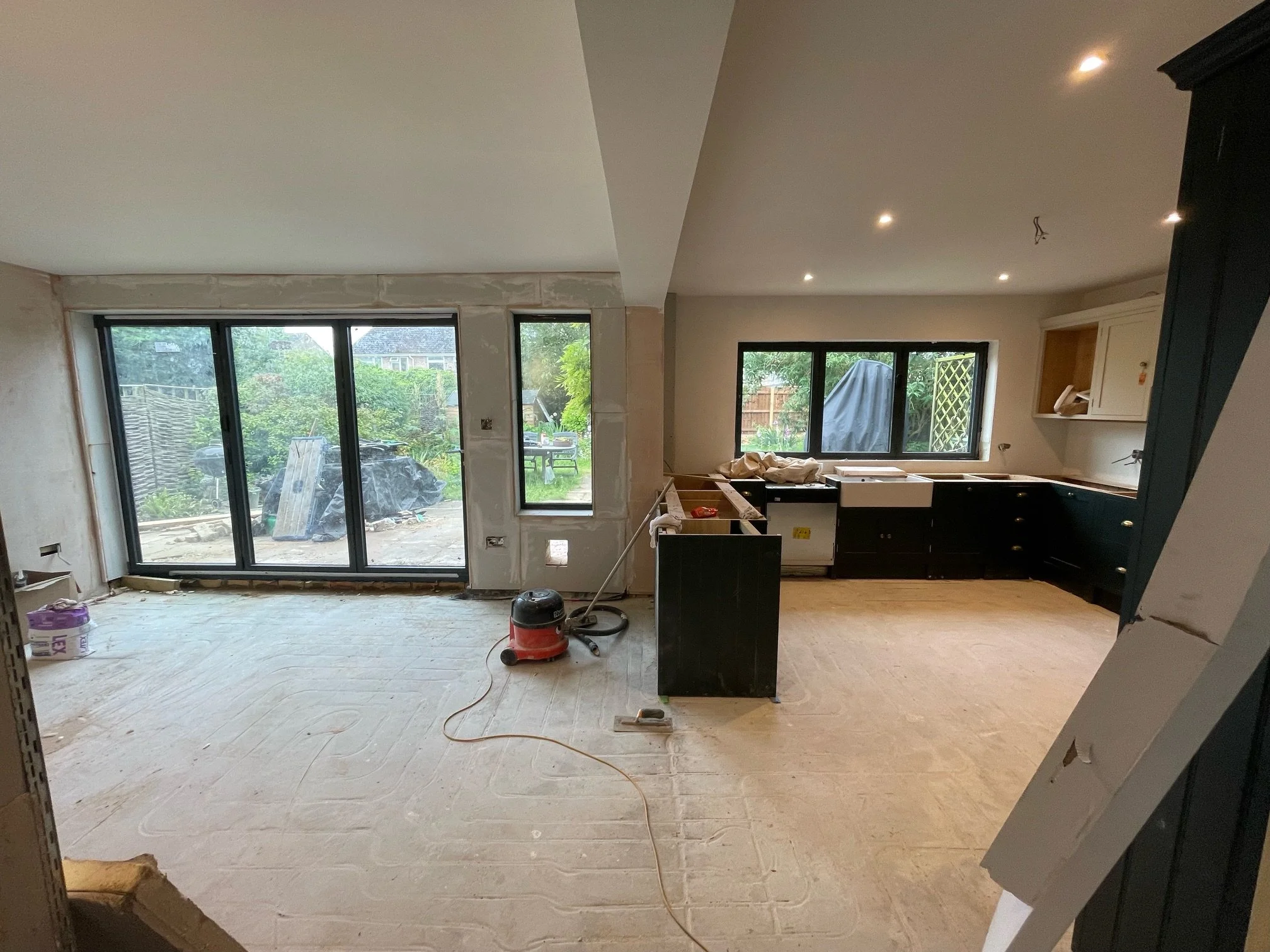 In the final weeks of the project, the focus was on essential finishing touches that bring the entire space together. This involved applying the final coats of paint to walls and ceilings, creating a polished and uniform appearance. The installation of door handles, locks, and other hardware was completed to ensure both functionality and aesthetic appeal. Flooring finishes were laid down, providing a durable and stylish surface throughout the space. Skirting boards were fitted to cover gaps between walls and floors, contributing to a clean and finished look. The kitchen worktop and focal breakfast bar were installed, finalizing the kitchen area and making it both practical and inviting.